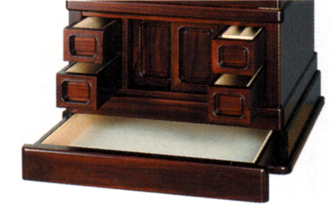 聖徳太子を偲び供養するための殿堂として建てられた「夢殿」。そんな想いをお仏壇に込めました。技術面はもちろんのこと、下台の収納スペースを大きくし、故人の思い出をいつまでも保管できるよう桐箱を内蔵するなど、機能面も充実しています。