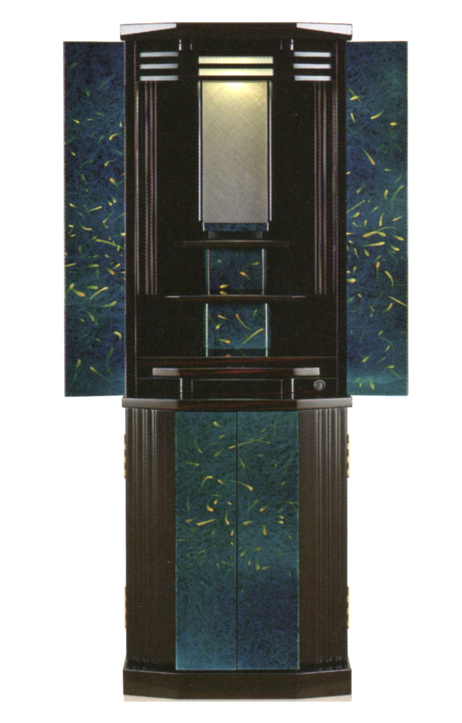 HOTARU 雨が上がった水面に飛び交う“ホタル”をイメージしたお仏壇。大切な方のもとへホタルとなって返り来る情景を彩っています。