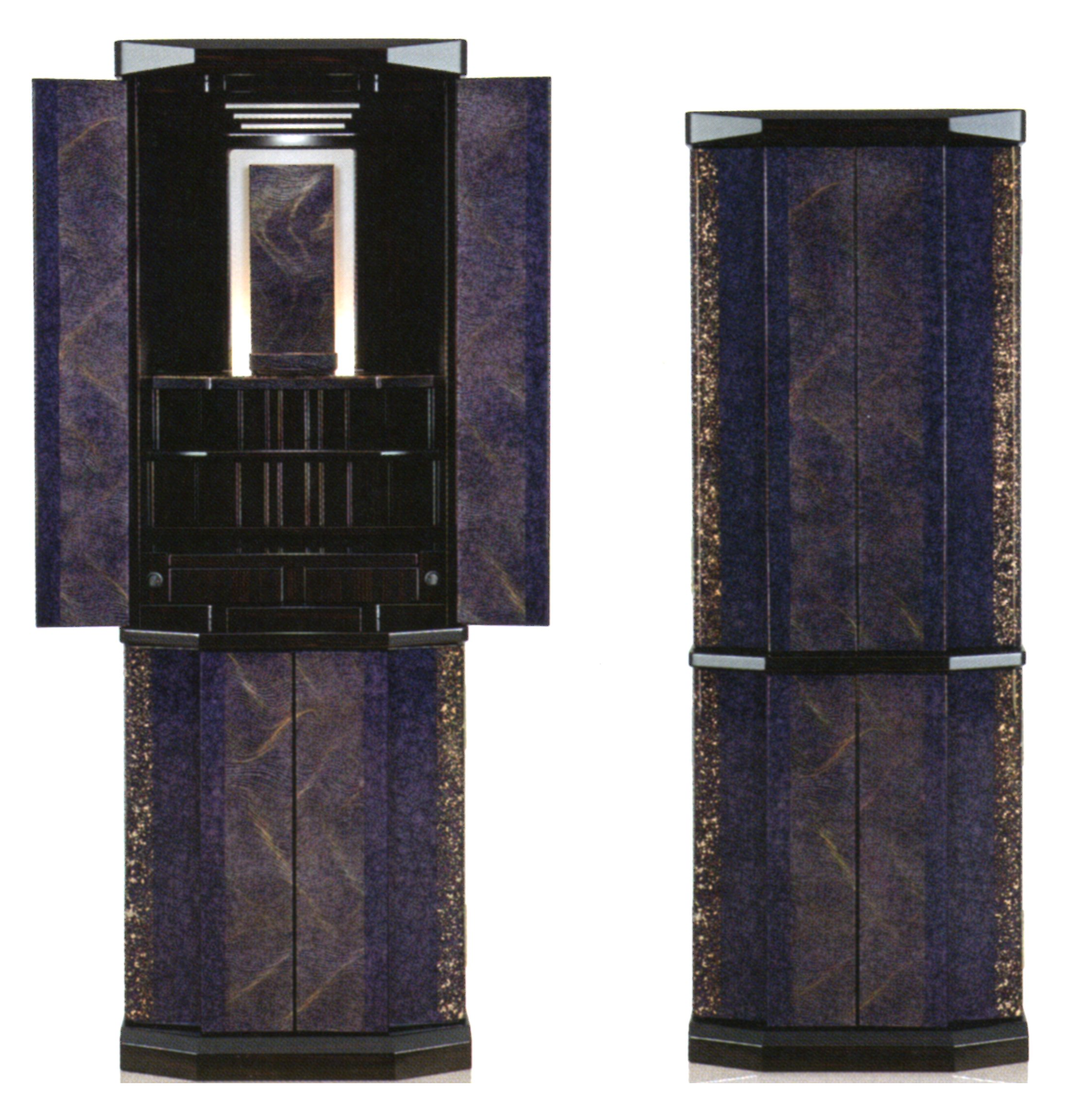 MICHI みかげ塗り仏壇 AME・SORA・HOTARUに待望の紫檀系が登場。故人にとって歩んできた人生は、決して平坦な一本道ではない。山あり谷あり紆余曲折の生涯を全うした道筋をみかげ塗りの技法を用いて表現しました。