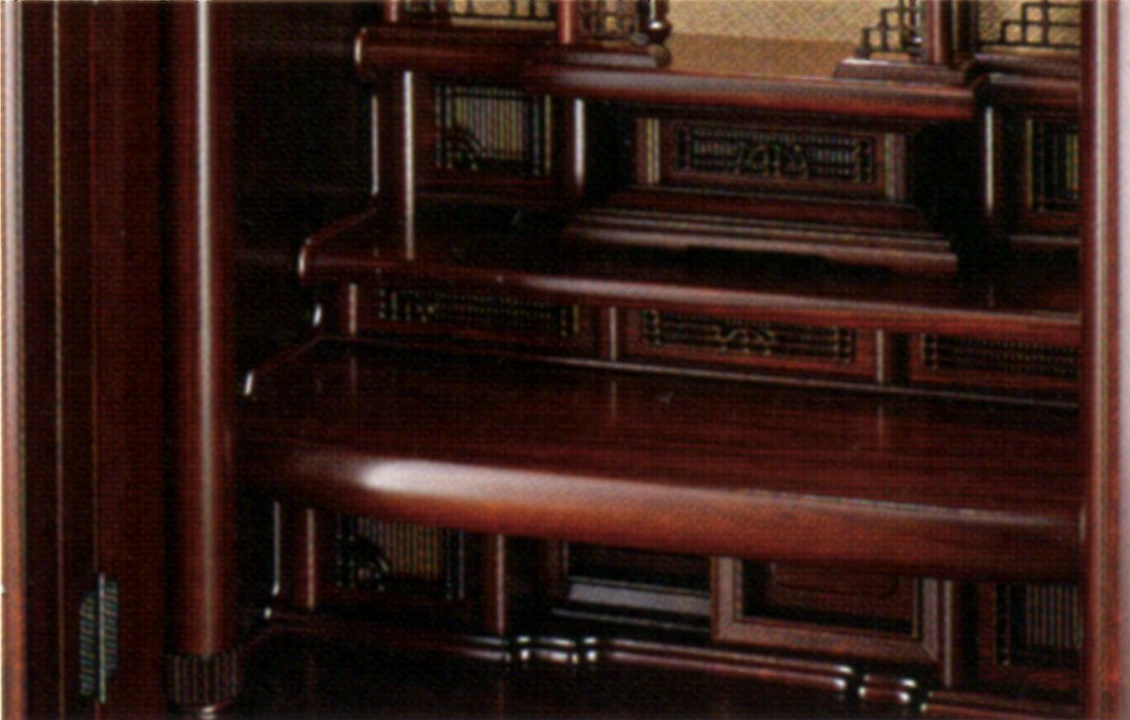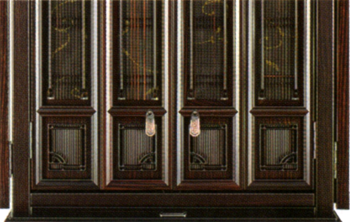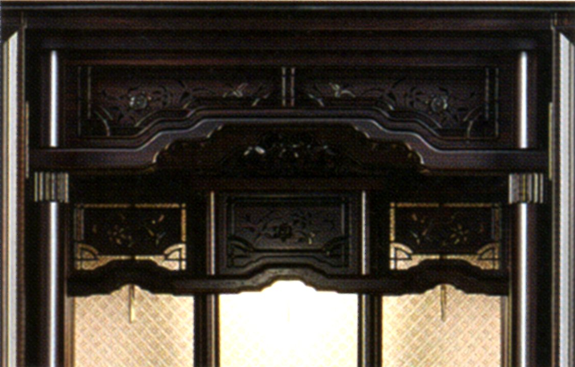 50年以上お仏壇制作に携わり、培った感性と技術力で造り上げた伝統唐木仏壇の枠を集めた傑作です。独創的な存在感は「仏王」の名にふさわしい壮厳さを醸し出しています。