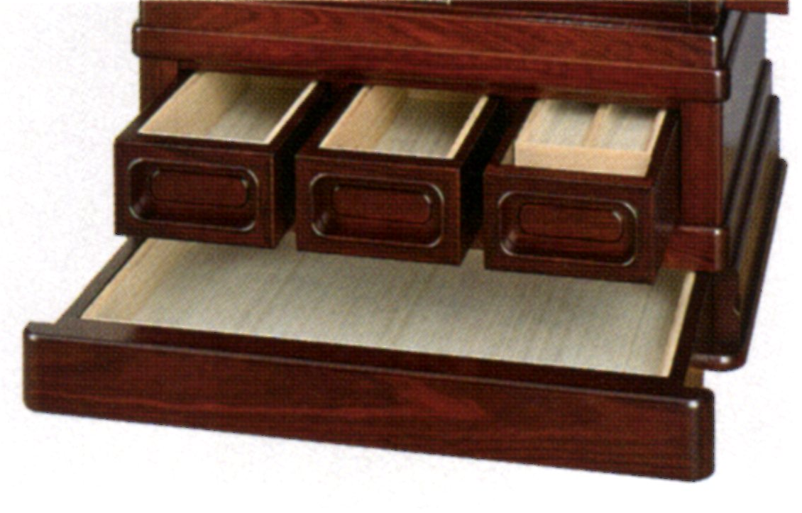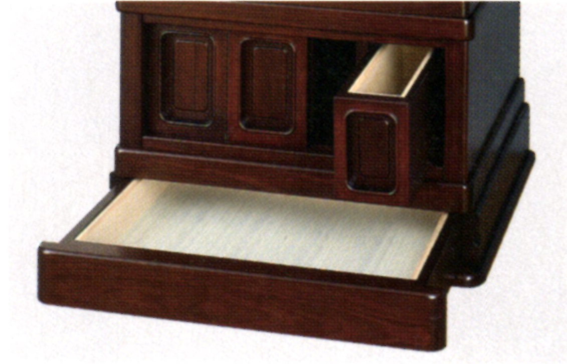聖徳太子を偲び供養するための殿堂として建てられた「夢殿」。そんな想いをお仏壇に込めました。技術面はもちろんのこと、下台の収納スペースを大きくし、故人の思い出をいつまでも保管できるよう桐箱を内蔵するなど、機能面も充実しています。